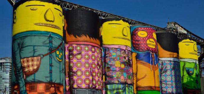 Altro punto di forza per comunicare bellezza e grandezza sono gli otto silos del porto di Catania7 , realizzati da numerosi artisti internazionali: gli spagnoli Okuda (La bella di Bellini), Rosh333 (Oraculo), Microbo (Il moto perpetuo di Scilla e Cariddi), Bo130 (La storia non scritta di Colapesce), Danilo Bucchi (Minotauro), VladyArt (Barattoli), il duo ucraino Intersni Kazki (Triskelion e La fuga di Ulisse da Polifemo). Dal lato mare anche il grande murale dell’artista Vhils: Uno sguardo sul mare. Attraverso un linguaggio fatto di immagini si racconta la tradizione e il mito e si attiva la memoria collettiva.